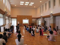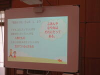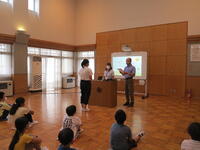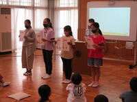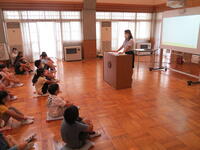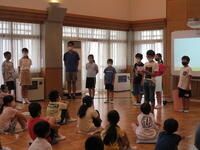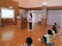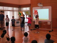 また、計画委員会の発表がありました。「う」んどうをしっかりと、「ち」ゃんとべんきょう、「わ」わらってけんこうにすごそう、という頭文字『うちわ』のキャッチフレーズの発表です。夏休みの目標を全校で確認しました。