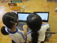 本日の2年生と1年生の学習の様子を紹介します。2年生は、来週行く「野田南図書館」について、クロ―ムブックのインターネット機能を使って調べる学習をしました。ローマ字打ちで検索して、図書館の様子を調べ地図を出して確かめるなど、友だちと協力し合って確認しました。中には、グーグルアースで自分が通った保育園や幼稚園を見つけた子もいて、喜んでいる姿が印象的でした。