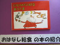 10月は、おはなし給食月間です。毎日、日替わりで「本」にちなんだ献立の給食を提供します。本の紹介も日替わりで先生方が分担します。児童昇降口にその日に紹介した「本」を置いておくと、子どもたちが本を見ていきます。深まる秋の中、「読書の秋」と「食欲の秋」をコラボさせた取り組みです。