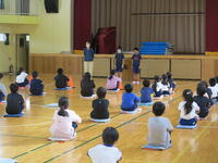 【自分の命を自分で守る】ためには、「いかのおすし」・・・「いかない、乗らない、大きな声を出す、すぐにげる、知らせる」が大切だということを教えてくださいました。また、車に乗った不審な人に遭遇した時には、車の進行方向ではなく、反対側に逃げることが大切であることも教えてくださいました。