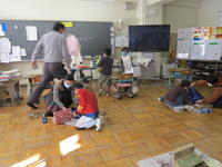 5時間目は、にじいろ学級の生活単元の授業研究でした。「スーパーにじ」の開店の掛け声でスタートです。お店の人とお客さんに分かれて活動しました。お客役は、1000円で買える品物を選び、計算機でたしかめ算をします。そのあと、レジに行って清算をします。店員役は、バーコードで読み込みをして手作りレジの計算機で計算後、支払い金額を伝えます。今日は、おつりの計算の学習でしたので、お客役は1000円を出しておつりを受け取ります。挨拶も呼び込みも、計算も皆上手にできていました。レジは、一つ一つ手作りです。たくさんの品物も手作りです。お金の計算の学習だけでなく、あいさつや態度などのコミュニケーションの力も身につく授業内容でした。どの子も楽しく取り組み、生活に生きる学びとなりました。野田市教育委員会の2名の指導主事の先生が授業を参観してくださいました。