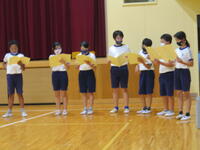 予定より少し早め早めに行動ができ、午前中の野外炊飯を無事終えることができました。飯盒炊飯、カレー作りは、初めてだという子も多かったですが、グループで協力して作ることができました。全ての行程を無事終え、閉校式が終わりました。福一小、二ツ塚小の友だちとも絆を深めることができた二日間でした。