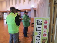 本日、いつものように、見守りボランティアの方々の支援を受けて、子どもたちが登校してきました。授業の都合で、「福にっこり展」は、22日の朝の搬出が決まりましたので、見守りボランティアの方々をお誘いすると、鑑賞にきてくださいました。本校の3人の職員の作品を見て、感心されていました。また、6年生も、本日鑑賞しました。口々にすごいなあ、すばらしいなあと言っていました。