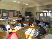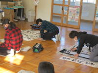 本日、3年生以上の学年では、石塚先生を講師にお迎えした書初めの学習をしました。初回に比べると子どもたちの字は力強く変化してきました。また、作品として完成させるには、名前の書き方も重要なポイントとなります。石塚先生は、実際に書いて見せてくださったり、一人一人添削を丁寧にしてくださったりしました。