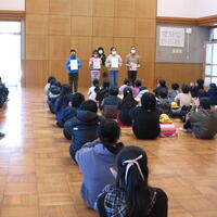 朝一番に予定していた冬休み集会を下校前に変更して実施しました。2022年の目標の発表を1年、3年、5年生の児童が行いました。「算数の計算を頑張る! 勉強を頑張る! いじめのない学校にする!」等々、元気に発表できました。