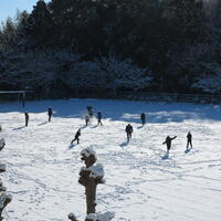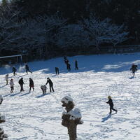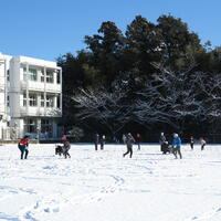 2022年が明け、本日から学校が始まりました。一面の雪景色の学校に、子どもたちの元気な声が戻ってきました。この機会を逃すまいと、朝一番に予定していた「冬休み明け集会」の時間を変更して、雪と遊ぶ時間を設定しました。今日の雪は、太陽の光が当たるとキラキラと輝き、風が吹くと木の枝からさらさらとこぼれ落ち、とても趣がありました。全校児童が思い思いに雪と触れ合い、楽しむことができました。