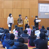 朝一番に予定していた冬休み集会を下校前に変更して実施しました。2022年の目標の発表を1年、3年、5年生の児童が行いました。「算数の計算を頑張る! 勉強を頑張る! いじめのない学校にする!」等々、元気に発表できました。