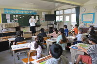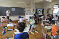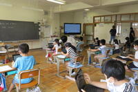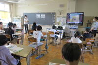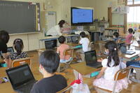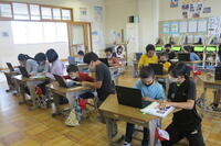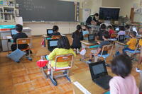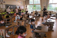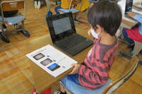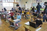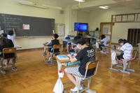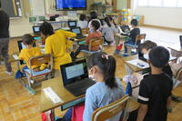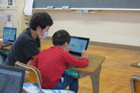 本日、入学して2カ月経過した1年生が,初めてクロームブックの端末を使って学習しました。クロームブックをやさしく大切に扱うこと、ルールを守って使うこと、約束が守れない場合は使用できなくなることを最初に確認してから、学習がスタートしました。今日は、6年生担任が特別ティーチャーとして、そして6年生の子どもたちが支援に回り学習しました。