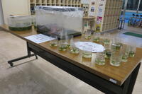 隣のブースの「ナミアゲハ」の幼虫の中には、前蛹からさなぎになっているものもあり、子どもたちは興味津々です。夏型アゲハですから、もうすぐ羽化します。家族の団欒で、学校の掲示物について話題にしてみてください。学校と家庭でタッグを組んで、お子さんの学びの輪を広げていきましょう。