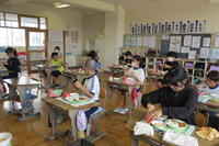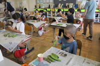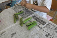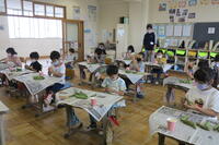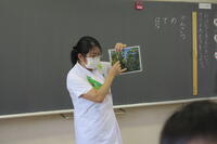 さいごに、学校図書支援員の手塚先生が、興風図書館から借りてきた大型絵本「そらまめくんの絵本」の読み聞かせをしてくださいました。みんな、静かに聞き入っていました。手塚先生は、学級文庫に、そらまめくんシリーズの本を揃えて置いてくださいました。1年生が剥いてくれたそら豆は、とてもおいしかったです。1年生のみんな、ありがとう!