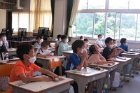 本日、放課後も蒸し暑い中でしたが、熱中症防止に配慮しながら、ミニバス、サッカーの練習をしました。とても暑く湿度も高かったため、マスクは必ず外し、冷房を効かせた部屋で何度も何度も小休止をとり、水分補給をさせました。皆、いい顔つきで練習していました。