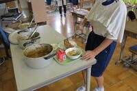 今日は、5年生の調理実習でした。林間学校で作るカレー作りを家庭科室で体験しました。実際に、家庭でカレーを作ったことがある児童、今日初めて包丁を使う児童など経験は様々でしたが、どの子も真剣に実習に取り組んでいました。今日は、豚肉の代わりにコンビーフを入れてカレーを作りました。玉ねぎやコンビーフの甘さが加わって、コクのあるカレーが出来上がりました。
