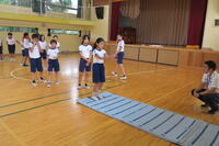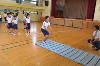 本日、5.6年生が体力テストを行いました。反復横跳び、立ち幅跳びなど、体育館で実施できるものを行いました。熱中症にならないよう、換気と水分補給に気をつけて健康管理を行い実施しました。どの子も、真剣に頑張っていました。