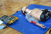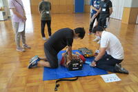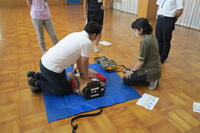 今週末より、水泳学習が始まります。放課後、もしもの時に備えた職員心肺蘇生研修を行いました。コロナ渦ですので、消防署よりの指導で人工呼吸は実施できないということでした。心臓マッサージとAEDを使い心肺蘇生訓練を行いました。命に直結する水泳指導です。安全を第一に実際の指導に当たります。
