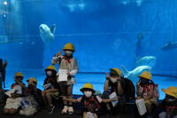 本日、1.2年生が大洗アクアワールドに行ってきました。天気を心配しましたが、雨も落ちず、あまり暑くもなく天候に恵まれた一日となりました。アクアワールドでは、リーダーを中心に3班に分かれて行動しました。サメやクラゲやマンボウ等いろいろな魚や海の生き物に出会うことができました。特に、オットセイとイルカのショーは圧巻でした。様々な技を見せてくれたオットセイと、ダイナミックなジャンプを見せてくれたイルカたちに、子どもたちの目はくぎ付けでした。リーダーを中心に、楽しい楽しい校外学習となりました。今日の1.2年生の宿題は、家の人に楽しかった思い出を話すことです。本日、お弁当を作ってくださった保護者の皆様、ありがとうございました。