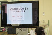 今日のお話のテーマは、「いじめはなくせる!+弁護士の仕事」についてです。石垣弁護士は、【弁護士の仕事は、言葉で人を守る仕事であること。人は、「体」と「心」でできている、その体と心を傷つけるのが「いじめ」であり、してはいけないもの。「いじめ」がダメなのは、「人格」を傷つけるから。今あることは変えられる、変えるのはみんな。「いじめ」は、みんなの力で減らすことができる。みんなは、よりよく成長するために学校に来ている。自分のやりがいを見つけて打ち込んでいたら、いじめなんかしている場合じゃない。】と5年生にエールをおくってくださいました。最後に、社会正義の実現を目指すご自身が、いつも身に着けている「平等、公平」の象徴である弁護士バッチを見させてくださいました。石垣先生、心に残る授業をありがとうございました。