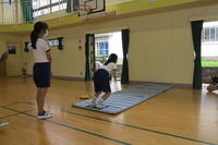 本日、5.6年生が体力テストを行いました。反復横跳び、立ち幅跳びなど、体育館で実施できるものを行いました。熱中症にならないよう、換気と水分補給に気をつけて健康管理を行い実施しました。どの子も、真剣に頑張っていました。