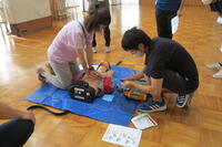 今週末より、水泳学習が始まります。放課後、もしもの時に備えた職員心肺蘇生研修を行いました。コロナ渦ですので、消防署よりの指導で人工呼吸は実施できないということでした。心臓マッサージとAEDを使い心肺蘇生訓練を行いました。命に直結する水泳指導です。安全を第一に実際の指導に当たります。