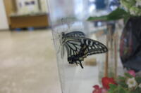 児童昇降口のナミアゲハ、シオカラトンボ、コノシメトンボのさなぎやヤゴが次々に羽化しています。また、今日のお昼、2年1組のシオカラトンボのヤゴが羽化しかけていると2年生が校長室に知らせに来てくれました。早速行って見てみると、ヤゴから羽化したトンボはまだ色がついていない透明で真っ白な羽を、体液を送って伸ばしているところでした。時間をかけて羽化していました。昼休み過ぎには、色がつき飛べるようになり、窓の外に旅立っていきました。シオカラトンボのメスです。プールのヤゴの救出は日々成功しています。