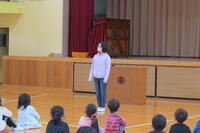 今日のお話のテーマは、「いじめはなくせる!+弁護士の仕事」についてです。石垣弁護士は、【弁護士の仕事は、言葉で人を守る仕事であること。人は、「体」と「心」でできている、その体と心を傷つけるのが「いじめ」であり、してはいけないもの。「いじめ」がダメなのは、「人格」を傷つけるから。今あることは変えられる、変えるのはみんな。「いじめ」は、みんなの力で減らすことができる。みんなは、よりよく成長するために学校に来ている。自分のやりがいを見つけて打ち込んでいたら、いじめなんかしている場合じゃない。】と5年生にエールをおくってくださいました。最後に、社会正義の実現を目指すご自身が、いつも身に着けている「平等、公平」の象徴である弁護士バッチを見させてくださいました。石垣先生、心に残る授業をありがとうございました。