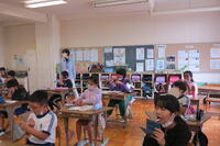 さいごに、学校図書支援員の手塚先生が、興風図書館から借りてきた大型絵本「そらまめくんの絵本」の読み聞かせをしてくださいました。みんな、静かに聞き入っていました。手塚先生は、学級文庫に、そらまめくんシリーズの本を揃えて置いてくださいました。1年生が剥いてくれたそら豆は、とてもおいしかったです。1年生のみんな、ありがとう!