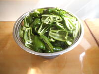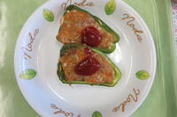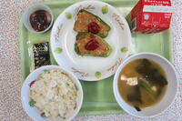今日のおすすめ給食は、「ピーマンのにくづめ」でしたが、今日の給食の食材のピーマンの種取りをしてくれたのは、にじいろ学級のお友だちです。朝の時間に栄養士の若松先生より手ほどきを受けて、手早く作業をしてくれました。上手に種取りをしてくれました。今日、にじいろ学級のお友だちが種取りをしてくれたピーマンは、調理員さんたちの手によって、おいしい肉詰めピーマンとなりました。