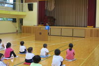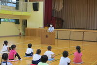 今日は、7月の全校集会を実施しました。高学年のリーダーが会を進めました。安全主任からは、今月の生活目標「整理整頓をしよう」についての話がありました。また、計画・放送委員会の委員長からは、緑の羽募金について全校で6千円を超える募金があり、日本の緑化の支援金として届けたとの報告がありました。校長からは、①地球温暖化を食い止めるために自分たちができることについて②人を大切にすることについて③植物や生物を大切に育てることについて④読書手帳の表彰についての話を子どもたちにしました。③については、「児童や業務員さんたちが協力して種まきをして育てた「千日紅」の苗を家で大切に育てたいと思う人に分けます。」という話をしました。家で相談してくるように話しましたので、欲しい場合は明日教えてもらうことになっています。植物を育てることで、豊かな心が育ちます。ご家庭でも話題にしてください。