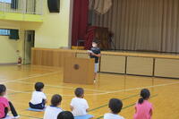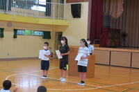 校長からは、「自分の良いところを見つけること」「夏休みに頑張ってほしいこと」「夏休みに注意すること」の3つの話をしました。そして、最後は、読書手帳の表彰です。読書を頑張った3人の友だちが表彰されました。