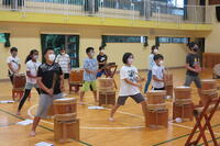 今年度は、秋に市内小・中音楽会が開催される見込みです。音楽会を見据えて、この夏休みから3年生も参加しての太鼓部の練習を実施しました。暑い日の練習ですので、9時から10時までの1時間の練習です。部長さんを中心に外部講師である太田先生のご指導のもとの実施です。今日が最終日となりました。この4日間、太鼓部の子どもたちはよく頑張りました。学校に送り出してくださった保護者の皆様、ありがとうございました。