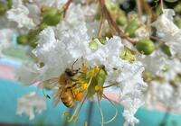 先日、アインシュタインが「ミツバチが絶滅すれば、その4年後に人類は絶滅する。」と言っていたということが書いてある本を目にしました。ミツバチは、人間や動物の食料となる果樹や野菜の受粉に大きく貢献しているからです。また、野田市の生物多様性のシンボルであるコウノトリと同じように、豊かな自然が残っているところでしか見られない二ホンミツバチについての情報にも触れました。そこで、朝、本校の校庭を回り、ミツバチがどのくらいいるのかを見て回りました。すると、本校のプール脇の百日紅(さるすべり)の花に300匹を超えるミツバチがいて、せわしなく蜜を集めていました。観察すると黄色っぽい縞模様、セイヨウミツバチです。セイヨウミツバチは、19世紀半ばに家畜として改良され、明治時代にアメリカから輸入された外来種です。本校の百日紅(さるすべり)は、セイヨウミツバチの大切な蜜源だということが分かりました。さて、二ホンミツバチですが、こちらは残念ながら確認できませんでした。農薬や化学肥料等を嫌がる二ホンミツバチです。学校や地域を花いっぱいにして、さらに、二ホンミツバチにとっても蜜源がある自然豊かな環境を作り、地域に貢献できる学校作りをしていきたいと思います。