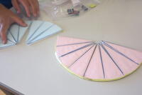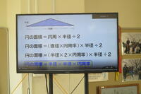 本日、特別非常勤講師の湯淺先生による算数の授業を実施しました。写真は、6年生の円の面積の学習の様子です。円の面積の出し方の公式は「半径×半径×円周率」ですが、子どもたちは、どうしてその公式が導き出されるのかについてを円を四角形に変える操作を通して学びました。実は、公式を導く方法は1つではありません。円を縦長の三角形に変えたり、半径を高さとした幅広の三角形に変えることでも導き出すことができます。湯淺先生は、発展的な内容を手作りの教材を使ってわかりやすく教えてくださいました。また、eライブラリのアニメーション教材を合わせて活用することで、学びがより深まりました。