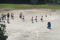今日、聖華保育園のお友だちが、本校校庭にやってきました。運動会練習をするためです。10月1日、本校校庭で実施される聖華保育園運動会に向けての練習です。聖華保育園のお友だちのはじめと終わりの挨拶はとても立派でした。蒸し暑い中でしたが、どの子も一生懸命頑張っていました。本校にも聖華保育園の卒園生がたくさんいます。練習がある日は教室の窓から練習の様子を見て、応援したり懐かしがったりしています。本番までもう少しです。元気な聖華保育園のちびっこたち、がんばれ!