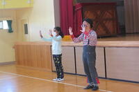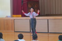 今日の3校時に、文化芸術鑑賞会を実施しました。「パントマイム」のパフォーマーである山田とうしさんをお招きしての鑑賞会です。山田とうしさんは、子供向けビデオ「しまじろうくんのまねっこダンス」や、「カロリーメイト」など多数のCM、NHK総合「ためしてガッテン」やNHK教育「ことばあ」など多数のテレビに出演するなど多方面でご活躍されていらっしゃるパフォーマーです。子どもたちの中には、「パントマイム」が何なのか知らない子もいましたが、今日のパフォーマンスを見て全員が「パントマイム」いうものを知ることができました。