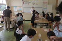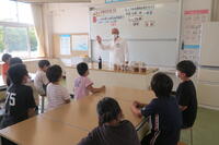 しょうゆの香りの成分は300種類で、りんごやバナナ、菜の花やバラなどたくさんの成分で構成されていること、しょうゆの種類は5種類で、「濃口醤油」「淡口しょうゆ」「たまりしょうゆ」「再仕込みしょうゆ」「白しょうゆ」であること、これは、法律で決まっているそうです。子どもたちは、初めて知ることに驚きながら博士の話に熱心に耳を傾けていました。また、事前の学習がよく身についていて、博士の問いかけによく反応し答えていました。質問タイムでは、たくさんの質問が出ました。博士は、わかりやすく答えてくださいました。楽しい興味深い授業でしたので、あっという間の1時間でした。講師の先生方に感謝です。