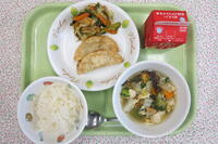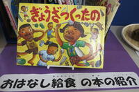 おはなし給食7日目は、「ぎょうざつくったの」に出てくるぎょうざが主役です。この本は、お母さんの留守に友だちを呼んで、ウナちゃんがぎょうざづくりに大奮闘する絵本です。ぎょうざの皮200個作って、白菜、人参、にんにく・・・、さあどうなるのか楽しみになる絵本です。絵に迫力がある絵本です。