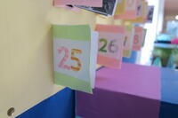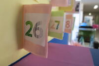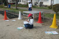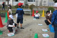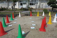 今日は、秋晴れの過ごしやすい1日でした。校庭に出てみると、3年生が理科で実験している日時計が置いてありました。朝から1時間ごとに影の位置を記録して、完成させます。この実験で、太陽がどのように動いているかを調べます。1日かけての実験です。子どもたちの近くでは、黄花コスモスが揺れていました。