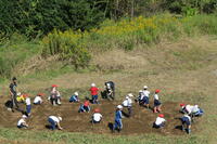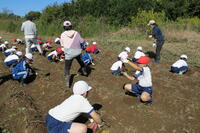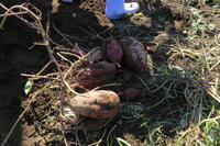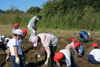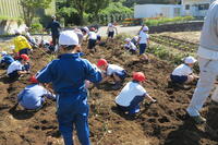 本日、1年生、2年生がいもほりを行いました。5月に植え付けたさつまいもです。畑の先生の金剛寺さんがさつまいものほり方を丁寧に教えてくださいました。今年は、さつまいもの生育が芳しくないと聞いていたので、心配していましたが、大きなさつまいもが育っている株もあり、子どもたちも嬉々とした表情で収穫しました。貴重な体験でした。