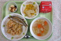 今日は、おはなし給食15日目です。「かいけつゾロリのチョコレートじょう」に出てくるチョコが主役です。今日の給食では、バナナチョコが登場しました。ブルルくじでチョコレート城をあてたゾロリは、北の寒い土地へと城を取りに行きますが、その途中には恐ろしい罠が仕掛けてあります。さあ、続きはどうなるのでしょうか。お昼の放送でこの本を紹介したのは、1年生担任の吉田先生です。アニメにもなっている子どもたちに大人気のシリーズ本ですが、活字で読んでほしい本の一つです。