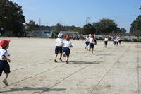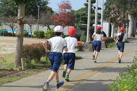 本日、持久走練習2日目でした。おとといの練習1日目には、練習時に危険がないように、6年生とにじいろ学級のお友だち、そして職員が校舎外周の砂利や石ころや落ち葉を掃いて整備しました。今日は、秋晴れのとてもいい天気でした。運動をするのにもとても良い陽気でした。今日の練習では、高学年が校舎外周を走りました。次回は、低学年が外周を走ります。外周を走ると除草作業の時に保護者の皆さんが残しておいてくださったセイタカアワダチソウ(アレルギーの原因になるブタクサではありません)が、きれいに咲いています。虫媒花なので蝶や虫がたくさんきています。また、先日全校で植え付けしたコスモスが咲き始めています。健康観察表や保護者の印を忘れてしまうと練習することができませんので、ご家庭のご協力をお願いいたします。体力向上を図るための取組です。
