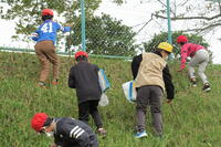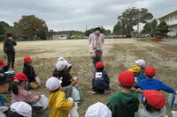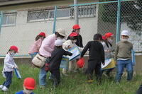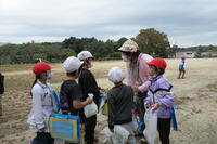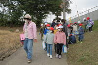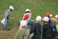 本日、わぴちゃんこと野田市在住の岩槻秀明さんを講師にお迎えし、学校周りの自然観察を行いました。1.2年生は2時間目、3.4年生は3時間目に行いました。曇りでしたので、チョウや蜂などの昆虫はなかなか見つけられませんでしたが、珍しいショウリョウバッタモドキ、いなご、越冬するトノサマバッタ、かえるなどの生き物や、どんぐり、くず、ガマの穂、しゅろなど、たくさんの植物の発見がありました。フィールドワークでは、1.2年生はいろいろな生物に親しむこと、3.4年生は外来種についても知ることをめあてに活動しました。先日、全校で植えたコスモスが花をつけた様子や、虫たちの蜜源として残してくださったセイタカアワダチソウも見ることができました。図書室にあるたくさんの本を執筆されているわぴちゃん先生と実際に会って話を聞くことができ、子どもたちはとても嬉しそうでした。次回は、5.6年生が生物多様性についての講義を受け、自然の大切さや環境問題についての学びを深めます。