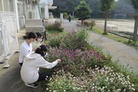 6年生が、「未来 福にっこり プロジェクト」の一環として、ビオトープづくりに着手しています。しかし、ビオトープを作るには資金が必要です。そこで考えたのが、バザーで福二小の資源を活用して何かできないかということでした。考えた結果、花壇に咲いている「千日紅」の花をドライフラワーにして価値を見出し、インテリアを作ることにたどり着きました。今、来週末のバザーでたくさんの人が体験できるように準備を進めています。6年生は、始業前に率先して準備を進めています。千日紅をドライフラワーにしたらいいと教えてくれた5年生やバザーで売ったらいいと思いついた2年生のお友だちのアイデアが発端です。知恵を出し合い未来を「福にっこり」にしていきたいですね。頑張れ!6年生!