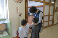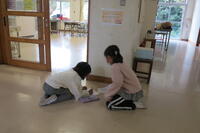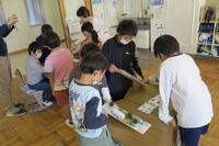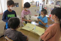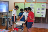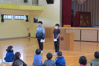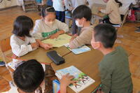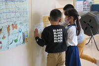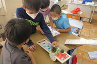 本日、3年生が2年生の教室に行き、国語の「のらねこ」の学習で作成したリーフレットと図工の学習で作った「ビー玉コロコロ」を紹介しました。グループに分かれ、時間で移動しながら交流しました。本校は、在籍人数が少ないので、このような異学年交流をたくさん行い、小規模学校におけるリスクを補っています。また、このように学習の成果を交流授業で他学年に伝える活動を通して、表現力を養っています。3年生は、口々に「3年生になったらこんな学習をするんだよ。」と2年生に声をかけ教えていました。2年生にとっても、一つ学年が上がった時の学習内容を知ることができ、よい経験となりました。また、3年生が作った図工の作品で遊ばせてもらってとても嬉しそうでした。