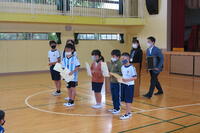 本日の校長からの話は3つです。1つ目は、「気候のいい秋だからこそ気持ちよくできる活動を頑張ることについて」2つ目は、「自ら進んで活動することの大切さについて」3つ目は、「感染症防止を気を引き締めてがんばることについて」です。最後は、読書手帳の表彰をしました。今年度が始まり、200冊読破の友だちもいます。福二小の全児童に読書を頑張ってほしいと思います。