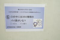昨日より、体育健康委員会が中心になって「歯と口のクイズラリー2022」を行っています。休み時間に各階に表示してあるクイズを探し、あらかじめ配付したある解答用紙に答えて、ある言葉を導き出すクイズラリーです。特に低学年が意欲的に参加しています。各階を回ってみると、年上の上級生が1年生に優しくアドバイスしている場面をたくさん見かけました。今日の給食の献立は、「いい歯の日」献立です。給食ともコラボした取組です。昇降口にも、「歯」についての掲示物が貼ってあります。福二小の子どもたちは、掲示物をよく見ています。80才まで20本の健康な歯を残せるような学びの活動です。