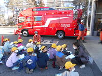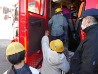 本日、3年生が野田消防本部へ福田一小の友だちと一緒に見学に行きました。忙しい仕事の中、時間を作ってくださり、隊員の皆さんが消防署や設備の役割についてや消防士の仕事についてなど、丁寧に詳しく教えてくださいました。火災の時に消火栓やプールなどから水を吸い上げ火を消す水槽付消防ポンプ自動車や人を助けるための道具をたくさん積んでいる救助工作車、そして、高いビルで火災があった時に出動するはしご車を見せてくださったり乗らせてくださったりしました。代表の児童と職員は、35mも高くなるはしご車に実際に乗せてもいただきました。子どもたちにとっては、心に残る生きた体験でした。お忙しい中、対応してくださった野田消防本部の方々に感謝です。