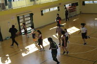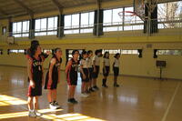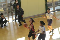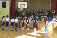 本日、ミニバスケットボール部のお別れ試合がありました。1回戦目は、[6年生+5年生]対[先生方]、2回戦目は、[6年生3名]対[5年生5名]、3回戦目は、またまた[6年生+5年生]対[先生方]で対戦しました。下級生の熱い応援を受け、ミニバス部の6年生は大活躍でした。6年生は、全ての試合に休むことなく参加し、下級生に最後の勇姿を見せてくれました。ドリブルやシュートは勿論、どの技も上手な6年生は下級生のお手本です。一緒にプレイした5年生にも良い刺激となりました。全校児童と職員は、あと1カ月足らずで卒業していく6年生のかっこいい姿を目に焼き付けました。素敵な3名の6年生は、素晴らしいプレイで下級生にバトンを渡しました。
