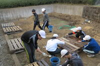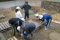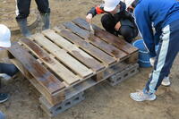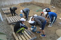 本日、6年生が卒業制作の「ビオトープづくり」を進めました。ビオトープまわりは土のため、上靴で近くに行くことができません。ですから、計画当初から6年生には、渡り(ウッドデッキのような)を作って近くに行くことができるようにしたいという思いがありました。今日は、手に入れた渡り板に防腐剤を塗布する作業をしました。6年生が下級生に残したいという思いを持って主体的に取り組んでいるビオトープづくり。だんだんと完成に近づいています。