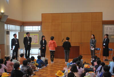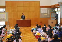 校長からは、笑顔があふれ、地域の方々から愛される学校になるために、「どんなことでもいいから自分が本当に自信が持てることを一つ」見つけること、「自分以外の誰かのために、小さなことでもいいから役立てる人になる」ことの2つをお願いしました。
