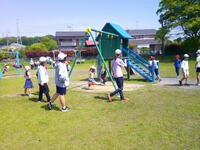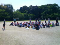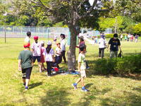 1年生の歓迎会を兼ねて、11号公園まで徒歩で移動し、たてわりグループで遊ぶ「全校なかよし遠足」を実施しました。春らしいというよりは、夏を思わせる日差しの下、とても楽しそうに、そして元気いっぱい遊ぶ姿が見られました。