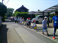 3年生が担任の坂野先生、サポトティーチャーの菅原先生の引率で、学校西側を中心に学区探検に行きました。畑や神社、消防団倉庫、用水路や雑木林などを見て歩き、坂野先生の説明を聞いたり気づいたことのメモを取ったりしていました。校外での活動は、いつも以上に子どたちの目が輝いて見えます。